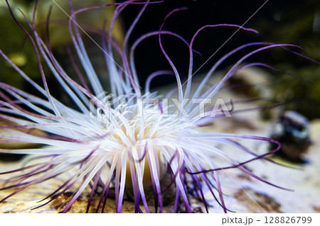 水中で広がるイソギンチャクの触手|美しい海の生き物