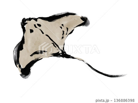 エイの和風筆書きイラスト