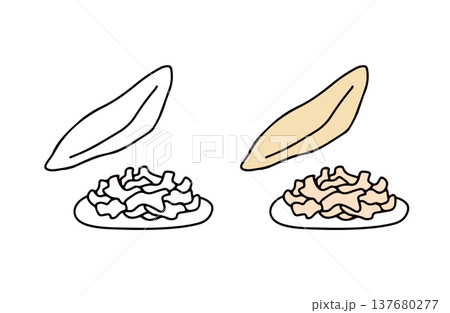 色ありと白黒のかつおぶしのイラストセット