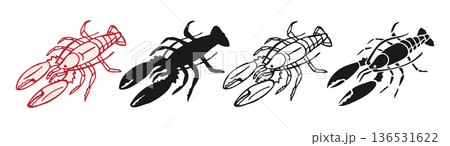Large detailed set of Lobsters in various top-down and frontal views, perfect for seafood and restaurant designs. Food.