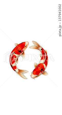 縦構図で円を描く二匹の錦鯉イラスト・調和と縁起を表す和風素材