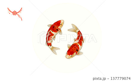 円を描く二匹の紅白錦鯉 対称構図の和風イラスト素材