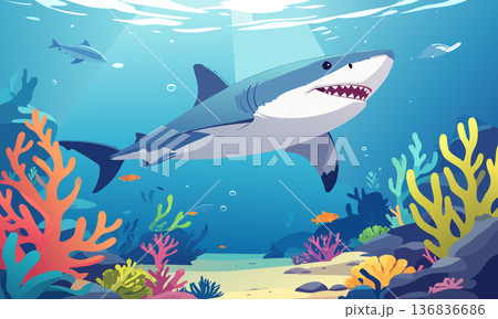 Colorful Ocean Scene with Happy Shark