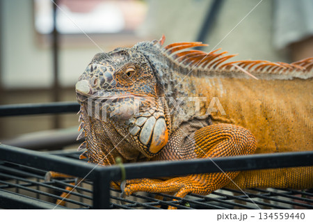 発情期でオレンジ色に変色したグリーンイグアナのオス