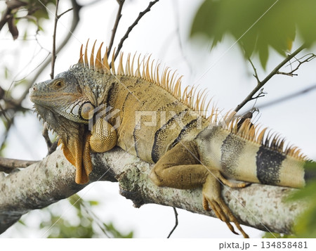 枝に腕をかけてくつろぐグリーンイグアナ