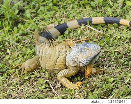 芝生に佇む野生のイグアナ