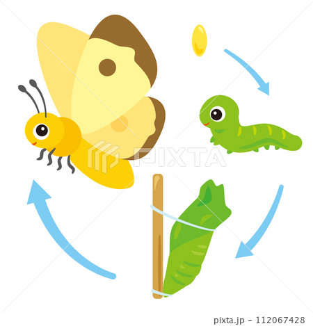 illustration of biology, The life cycle of a butterfly goes through four stages, egg, larva ,caterpillar, pupa ,chrysalis, and adult