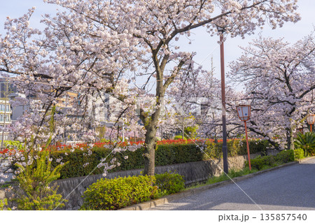 鴨川沿いの遊歩道に咲く満開の桜 祇園四条〜清水五条