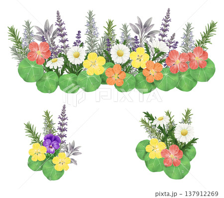 ナスタチュームが中心のビタミンカラーハーブガーデン