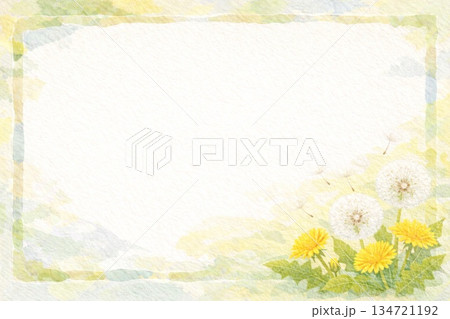 たんぽぽシリーズ:水彩風たんぽぽを描いたフレーム型背景