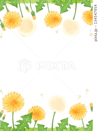 たんぽぽシリーズ:たんぽぽで縁取られた水彩フレーム背景