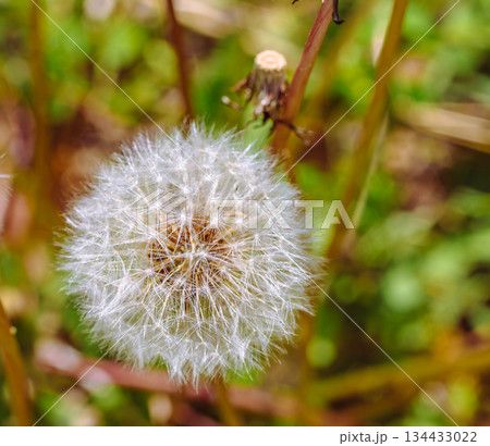 春の野原に咲くタンポポの冠毛