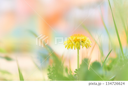 カラフルな背景一輪のタンポポの花