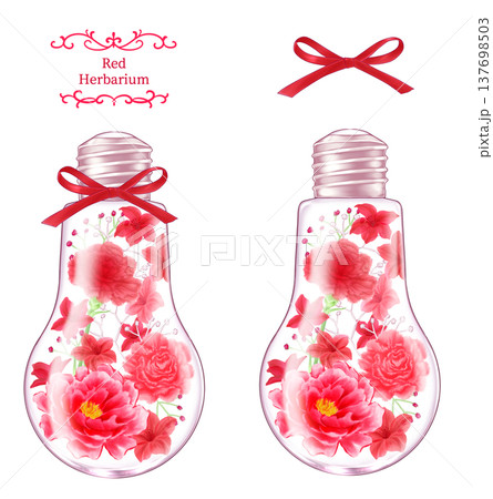 赤い花のハーバリウム 電球ボトル