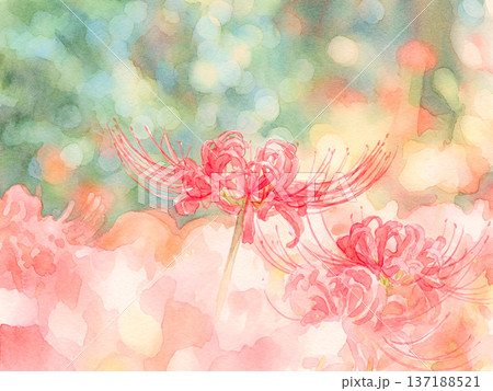 彼岸花と余白のある秋の水彩背景