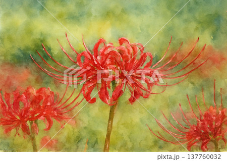 水彩で描いた彼岸花