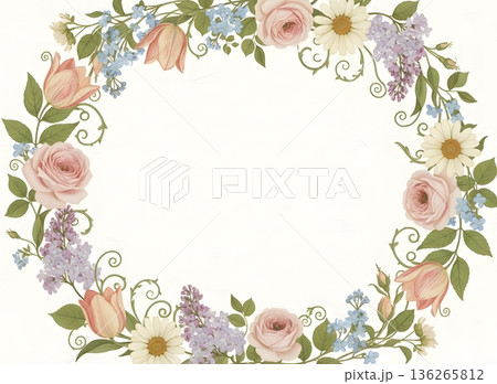 ハート型の花装飾フレーム|母の日・バレンタイン向けピンクの押し花背景