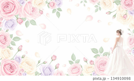 沢山のバラに包まれた花嫁 幸せいっぱい
