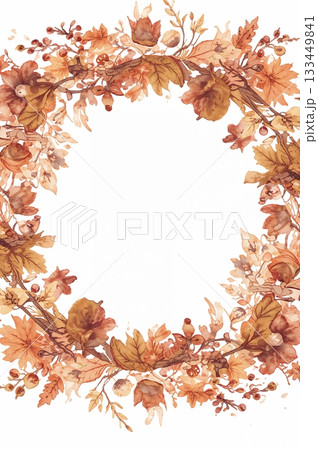 ブラウンリーフの秋ボタニカル水彩フレーム
