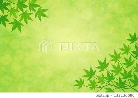 フレーム素材 新緑 ヤマモミジ 貼り絵風