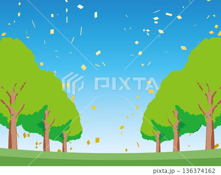 木、自然、秋、風景、背景、イラスト、樹木、植物、黄色、森、樹、ツリー、葉