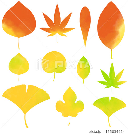 水彩の枯れ葉のイラストセット 落ち葉 紅葉