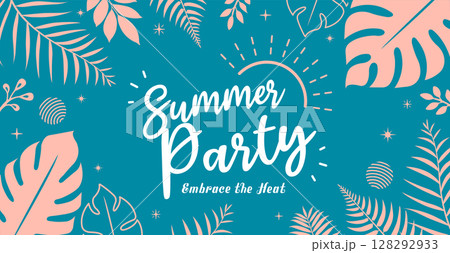 トロピカルリーフのフレーム。バカンスをイメージした夏の爽やかな背景素材。