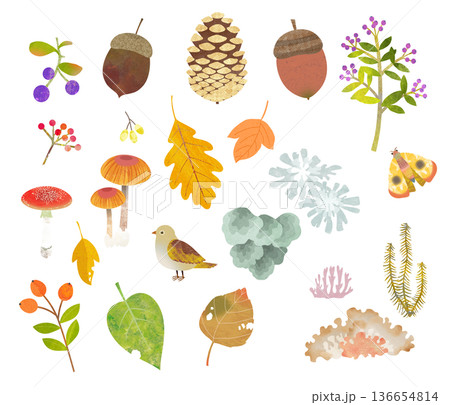 秋の森手描きイラストセット(カラー)