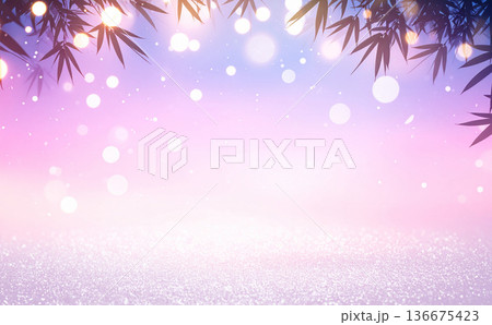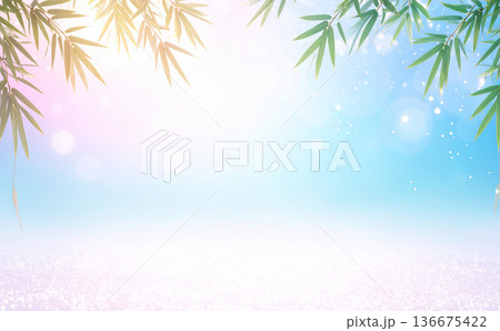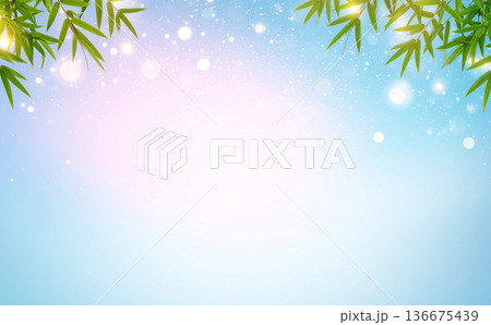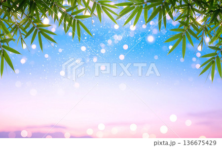七夕の笹飾りのイラスト笹の葉や竹に吹流しとキラキラしたイラスト