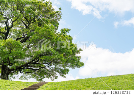 【神奈川県】青空が広がる爽やかな日の小高い丘と大きな木(令和7年4月)