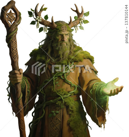 神秘的な森の守護者、緑の魔法を放つドルイドの肖像