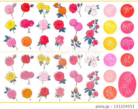 カラフルな花の手書きタッチのイラストセットです。背景素材・装飾に最適です。