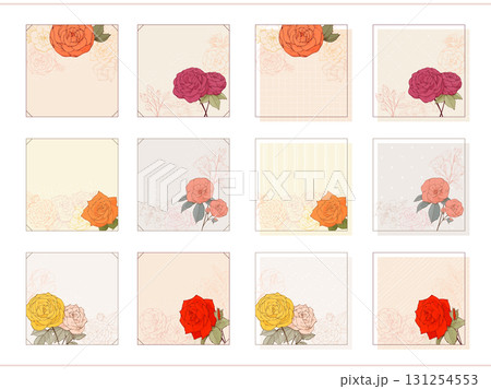 水彩画風手描きのバラのイラストのフレーム おしゃれな背景素材