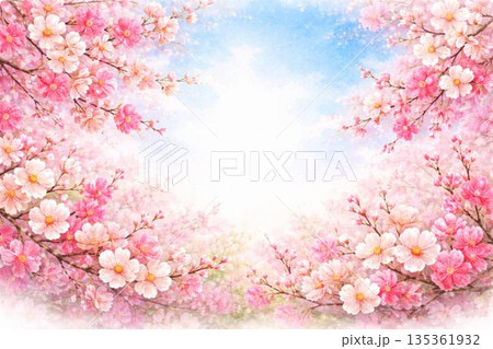 フレーム素材 梅林 梅の花 満開 砂絵調