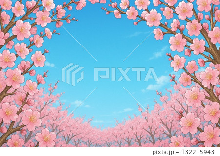フレーム素材 梅林 梅の花 満開 アニメ調