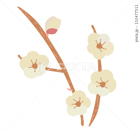 梅の花と枝のシンプルでかわいいベクターイラスト