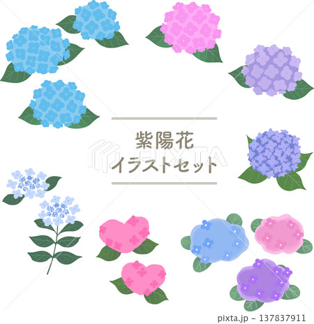あじさいの水彩風イラストセット