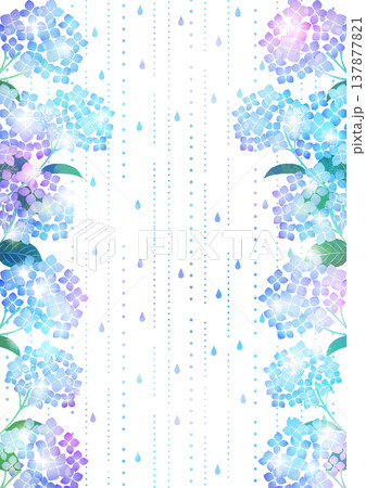 あじさい、梅雨、和風、鹿の子模様、背景、イラスト、かわいい、縦、白