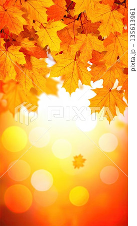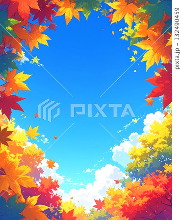 やわらかな赤紅葉と黄色と金の葉がふんわりと縁を彩り、秋のぬくもりと調和を感じさせる背景