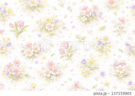 春の花シリーズ:小花が並ぶ優しいパステル地紋