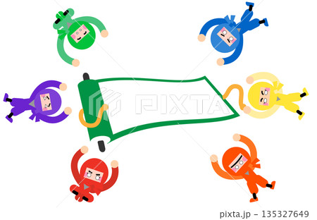 巻物を掲げて喜ぶかわいい忍者キャラクターのイラストセット
