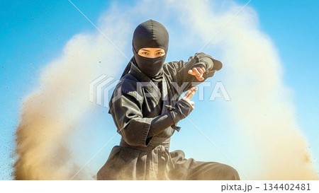 現代風の忍者の女性。水彩画。イラスト。