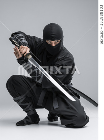 刀を構える日本の忍者