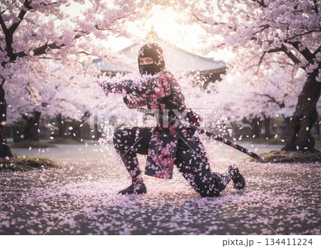 桜が舞い散る 女性忍者桜隠れの術