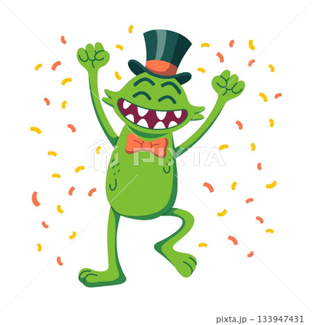 Dancing Green Monster Cartoon Vector. Fun Celebration Character Illustration Vector