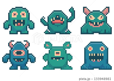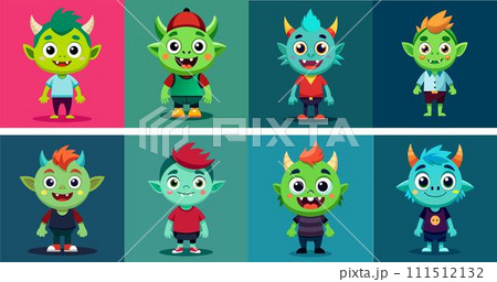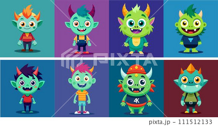 Colorful set of cartoon monsters with cute character, designs for print, book illustrations, festive decorations. Outline flat illustration for birthday party themes, posters, room decor.