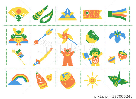 日本の5月をテーマにしたカラフルな手描き風イラストセット