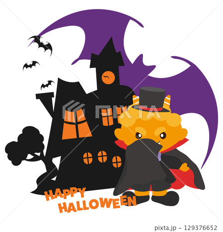 ハロウィン ドラキュラに仮装するぶたとコウモリ