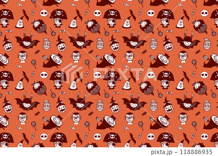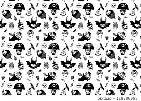 ハロウィン子供仮装のパターン柄 モノクロ