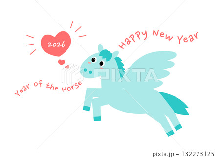 かわいいシンプルなペガサスのイラスト/飛んでいるペガサスのイラスト/年賀状素材/午年/干支/2026